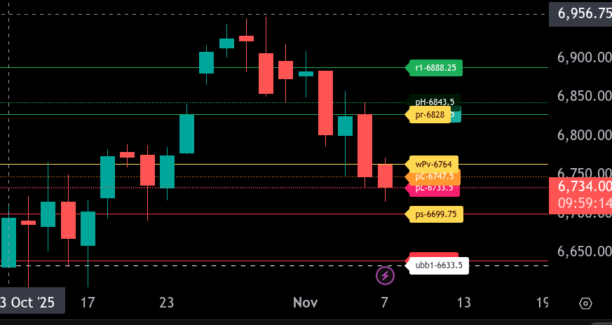 Overall, below 6764.00, the market bias remains bearish. Bulls will need to regain and hold above this pivot to trigger any sustained recovery attempt.