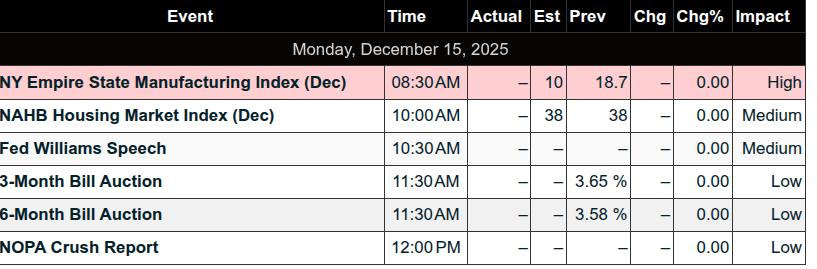 • 8:30 AM ET: Empire State Manufacturing Survey (Dec)