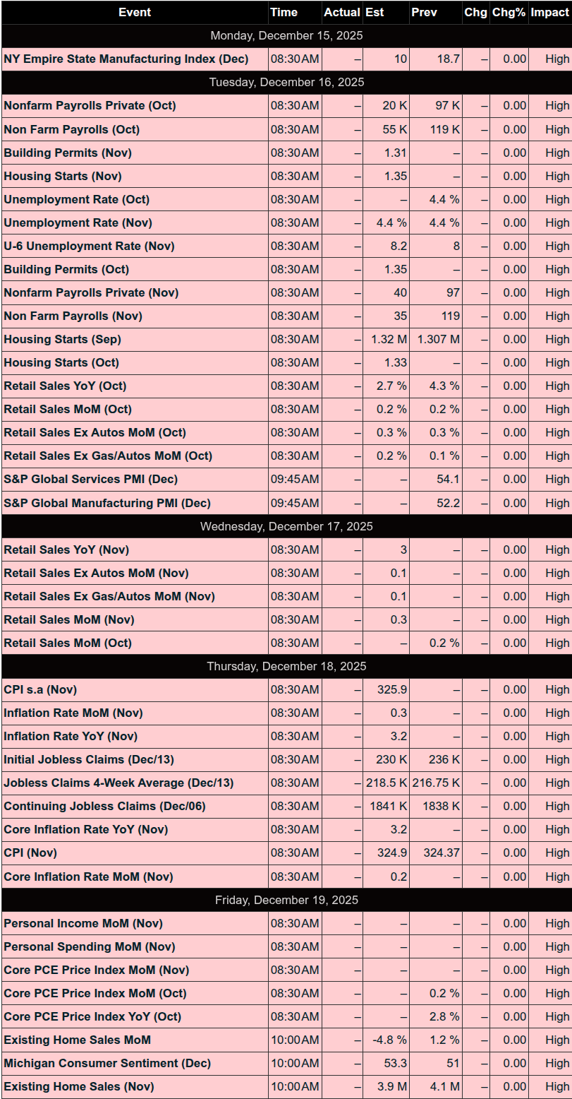Key Upcoming Events (December 15–19, 2025)