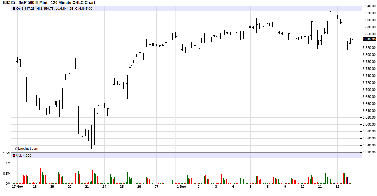 The bull/bear line for the ES is at 6842.50. This remains the key pivot for today. Holding above this level keeps the near-term tone constructive, while acceptance back below would shift control back to sellers.