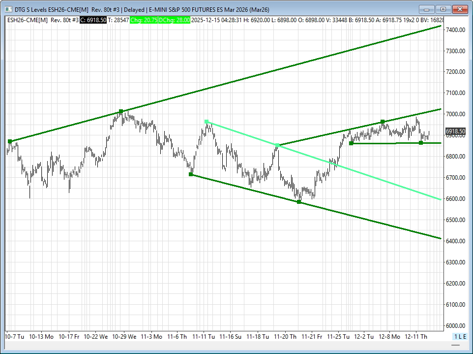 The upper range target for today is 6898.25. Initial resistance past the upper range target exists at 6915.50, followed by a larger upside extension toward 6950.75. A sustained push through 6898.25 would open the door to testing these higher resistance levels.
