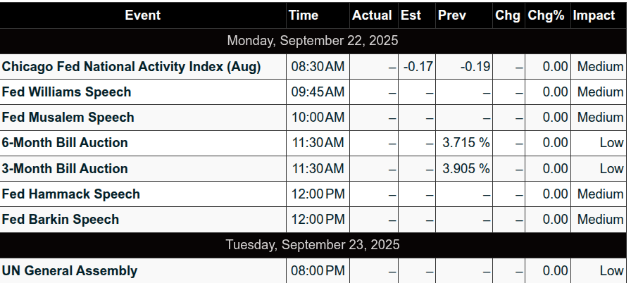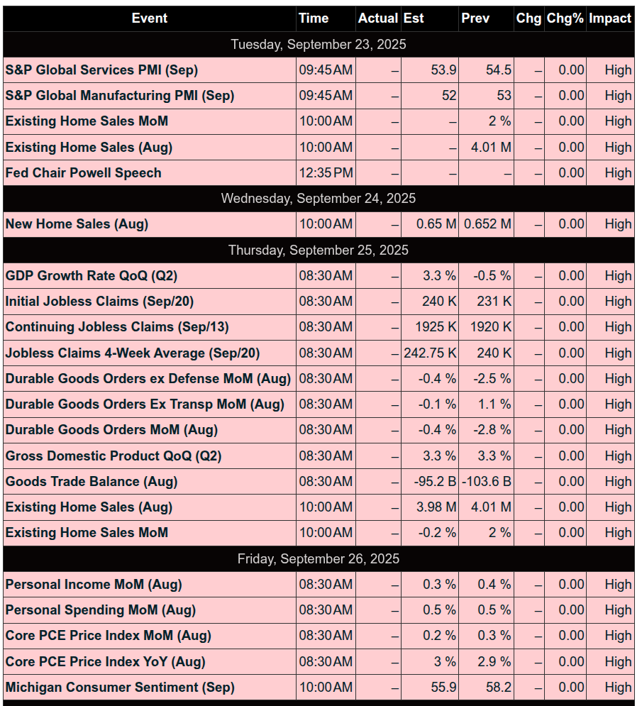 There are only 10 economic releases and 17 Fed speakers this week. Yes, you read that right—17 Fed speakers, including Powell on Tuesday.