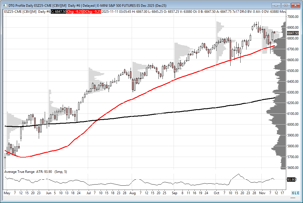 If the low is in, and the ES and NQ have moved past the AI bubble talk—which I believe they have—we should start looking for a resumption of the price action we saw before the two-week sell-off: early rally, pullback, and then buy.