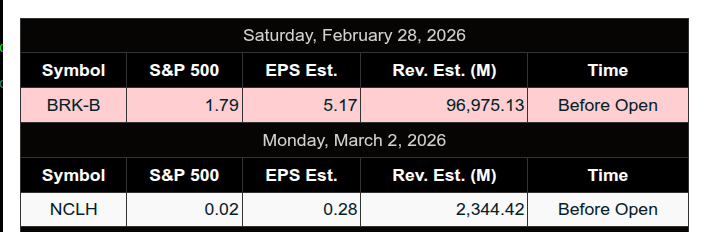 • No major earnings today. Monday pre-market: NCLH and KSPI.