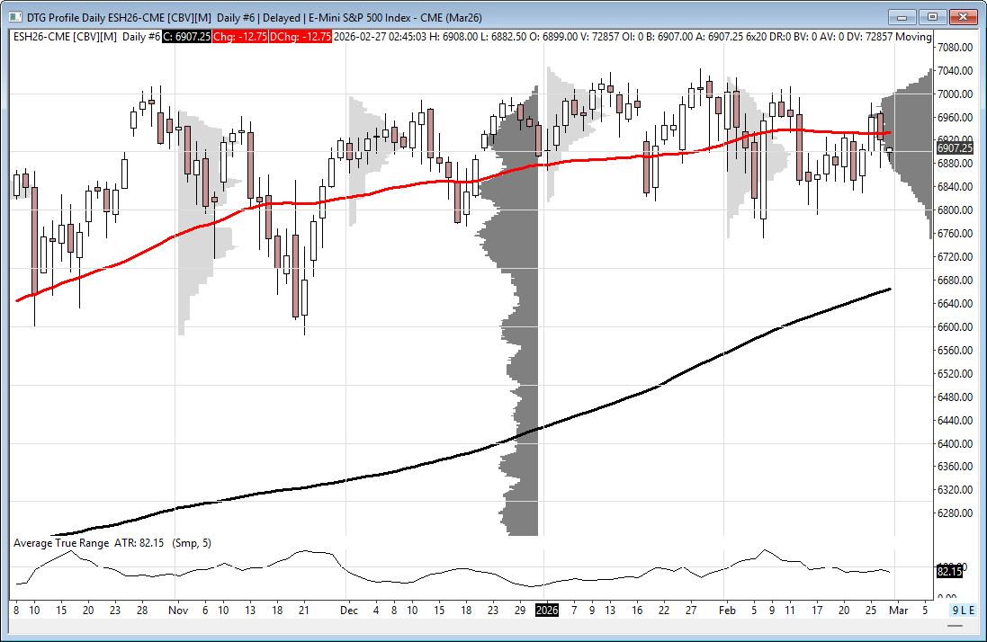 The bull/bear line for the ES is at 6920.25. This is the key level that defines intraday sentiment. Acceptance above this level shifts momentum back to the bulls, while continued trade below keeps sellers in control.