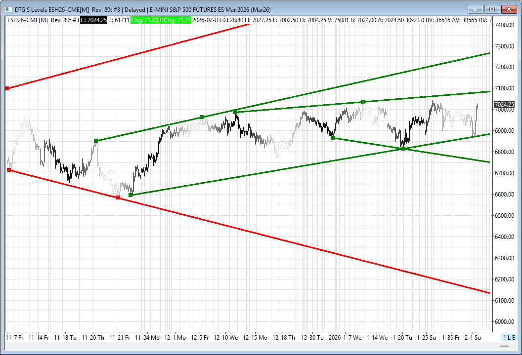 There were several extreme moves on Globex; while I won’t list them all, the ES traded down to 6864.25 before recovering to 6947.00 by 9:00 AM on heavy volume of 410k and opened Monday’s regular session at 6943.50. After the open, the ES dipped to 6941.50 and then rallied to 7005.25 by 10:20 AM—marking a 125-point recovery from the Globex low and a 63.75-point gain from the day’s session low.