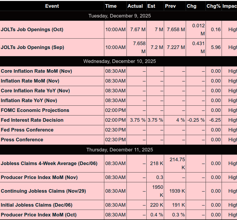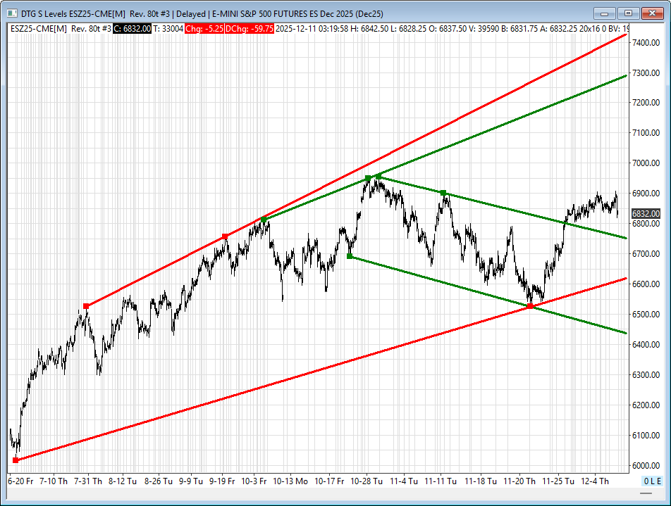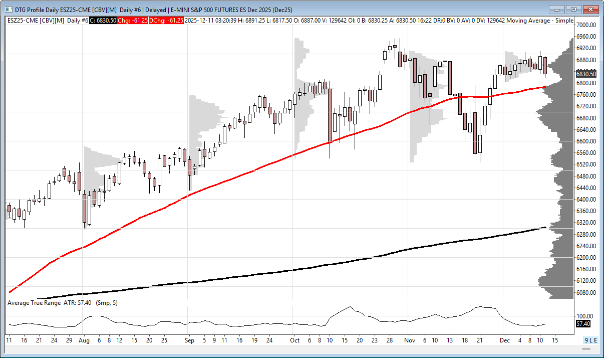 The ES fell sharply on Globex down to 6817.25, down over 1%, and the NQ traded down to 25,383.00, down over 1.5%. There was some news of a massive Ukrainian drone attack on Moscow, but I don’t think that was the driver. I think it was the Fed’s sea change on lowering rates in 2026. While I didn’t see this coming, it makes sense. As I have always said, the S&P hates uncertainty.