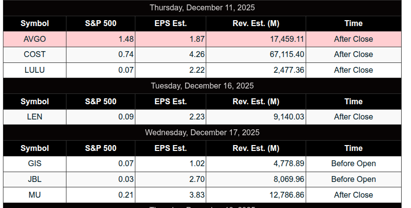 After-hours: Broadcom (AVGO), Costco (COST), Lululemon (LULU).