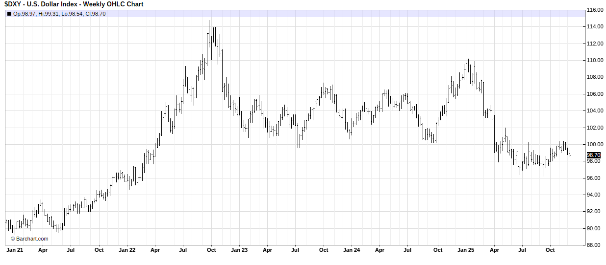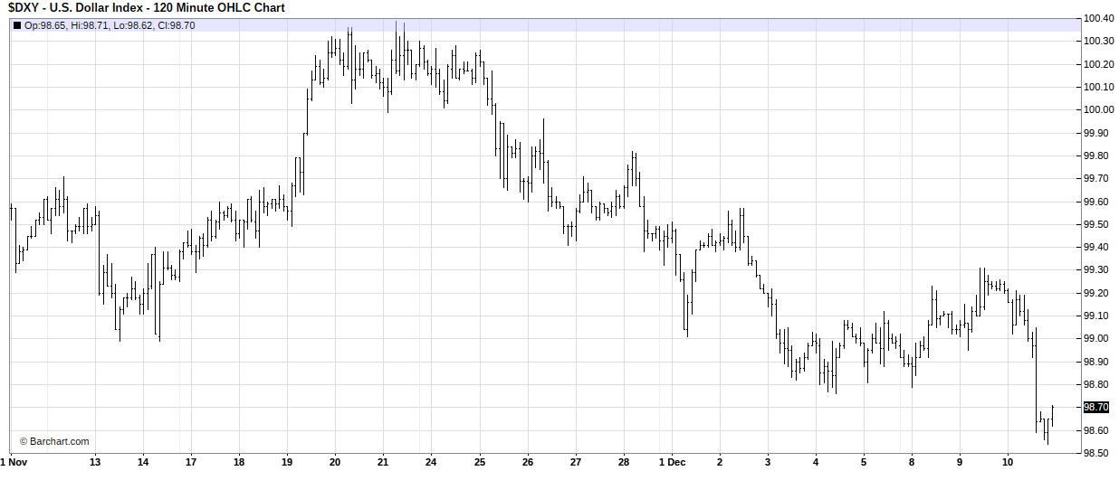 The dollar got pummeled again. Out of the last 13 sessions, the dollar has been down in 9 of them, with one day unchanged. Here is a link to Barchart’s DXY (Dollar Index).