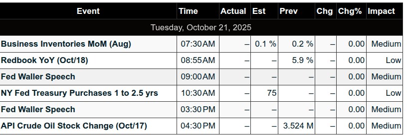 Discovery Trading Group Room Preview – Tuesday, October 21, 2025