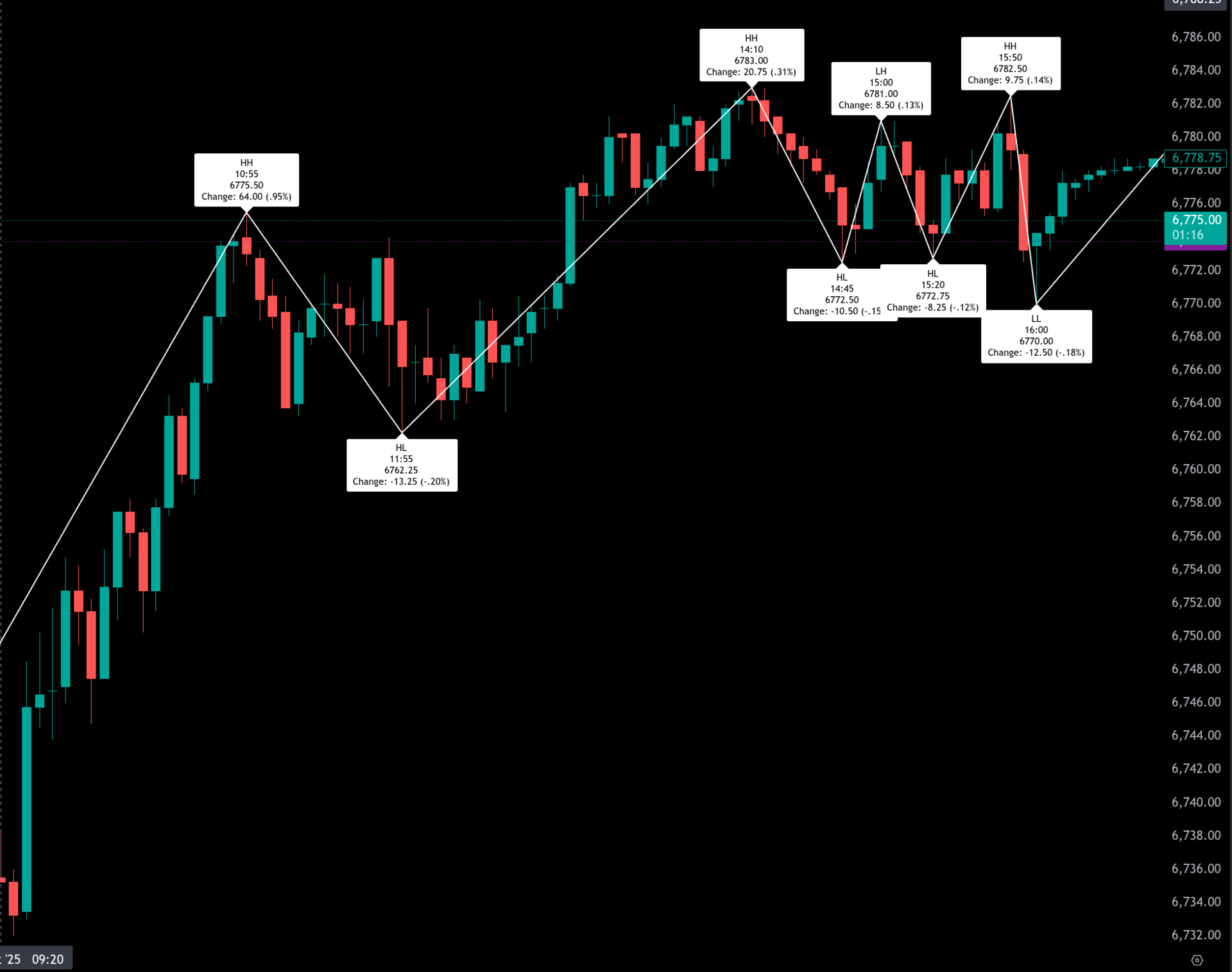 • Bosier tried several shorts around 6755–6771. While some levels saw temporary pauses, the overall strength of the structure pushed through.
