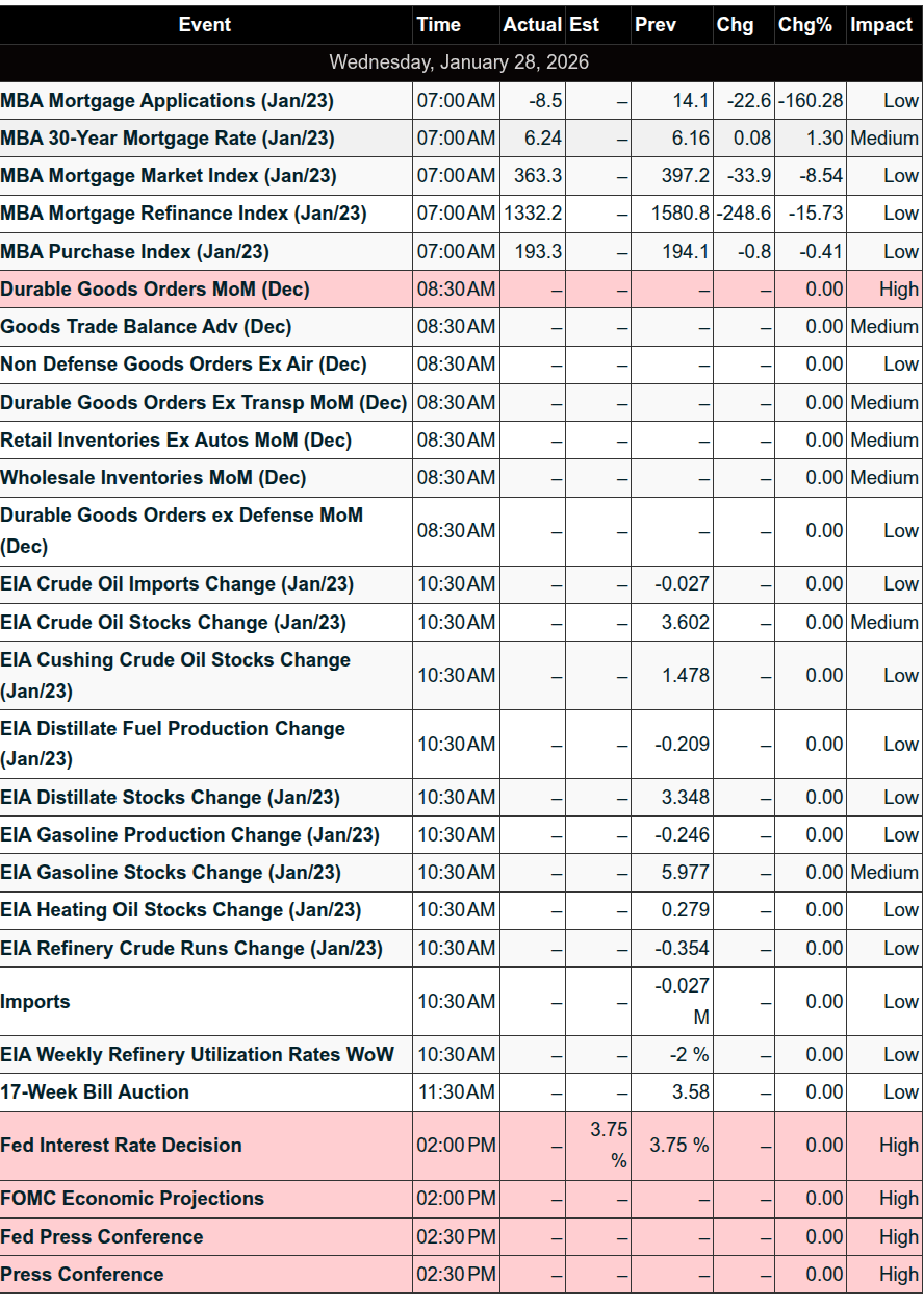 There are no economic releases today, but it is day two of the Fed’s two-day meeting, with META, TSLA, and MSFT reporting after the close.