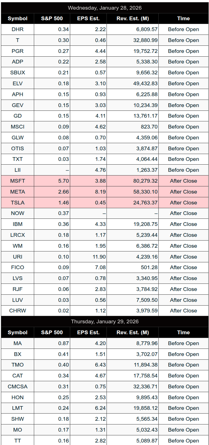 • Earnings after the bell: Tesla (TSLA), Meta (META), and Microsoft (MSFT)