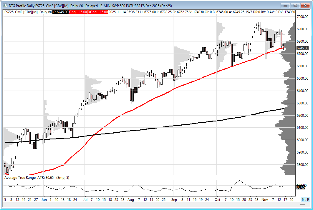 It took four consecutive higher closes to trade up to 6900.50 on Wednesday. Everything looked fine… or did it? No—because while the ES continued grinding higher, up four sessions in a row for a gain of 1.9%, the NQ had closed lower in 6 of the last 8 sessions. It was either down 3 in a row, down 5 of the last 7, or down 3 in a row again—for a loss of 2.9% from Wednesday’s highs and you can tag on another +1.5% in globex as of now (7:30am ET Friday).