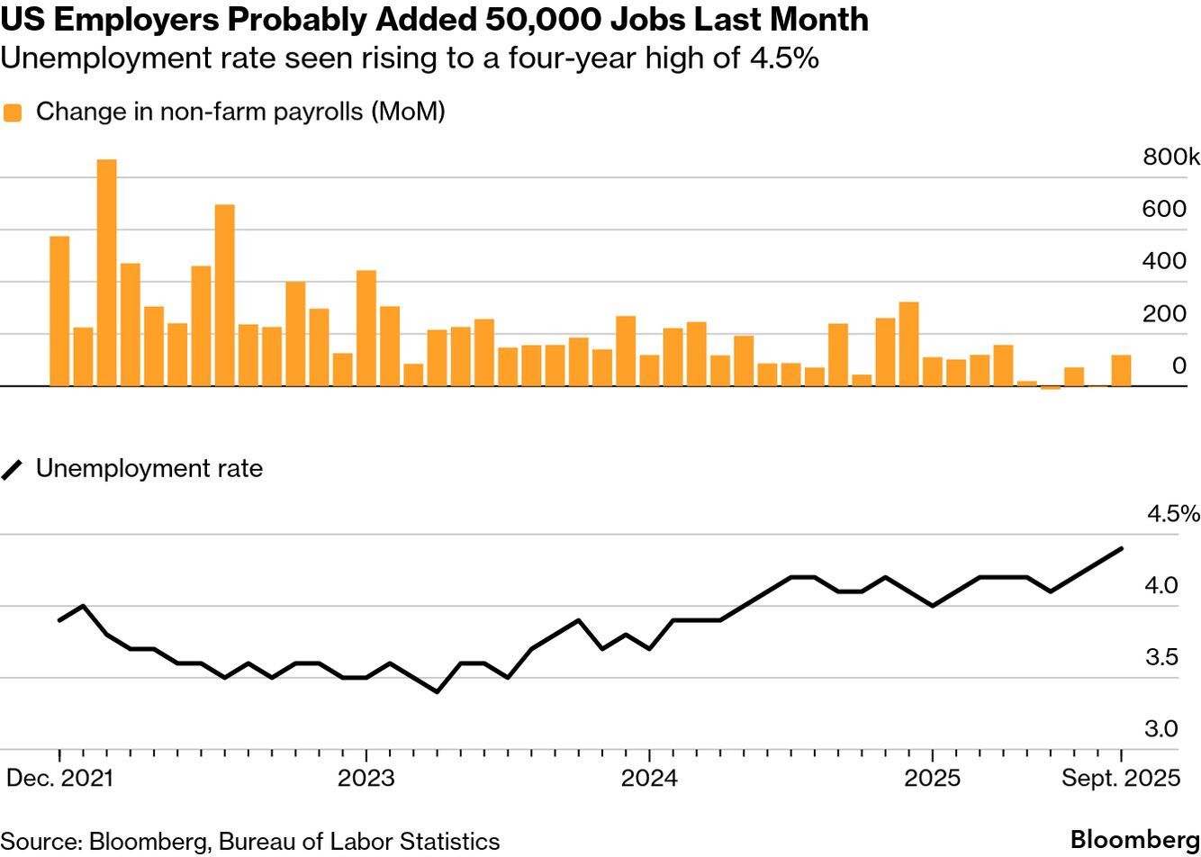 When you throw in all the AI uncertainties, the deluge of delayed economic reports, the increase in the unemployment rate, and all the other unknown data this week, there is no doubt the markets are spooked.