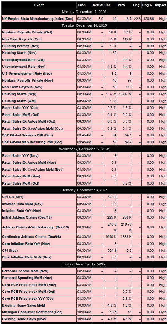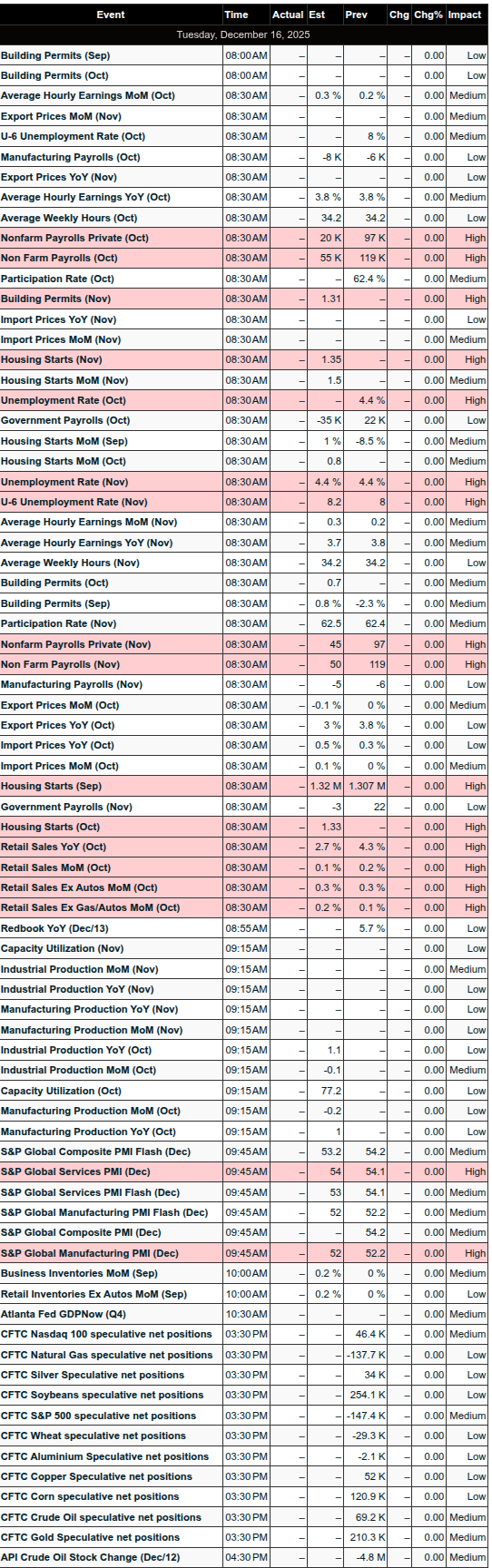 Tuesday, December 16 (High-impact: Delayed labor and retail data)