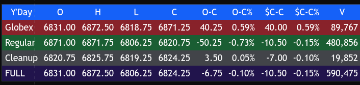 6822.75, before trading 6820.25 on the 4:00 cash close.