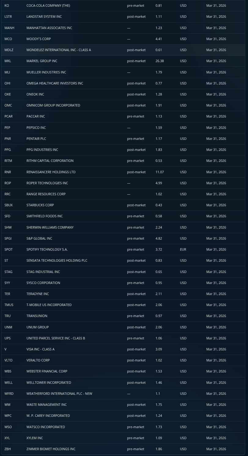 Heavy premarket and after-hours slate across industrials, consumer, tech, and financials.