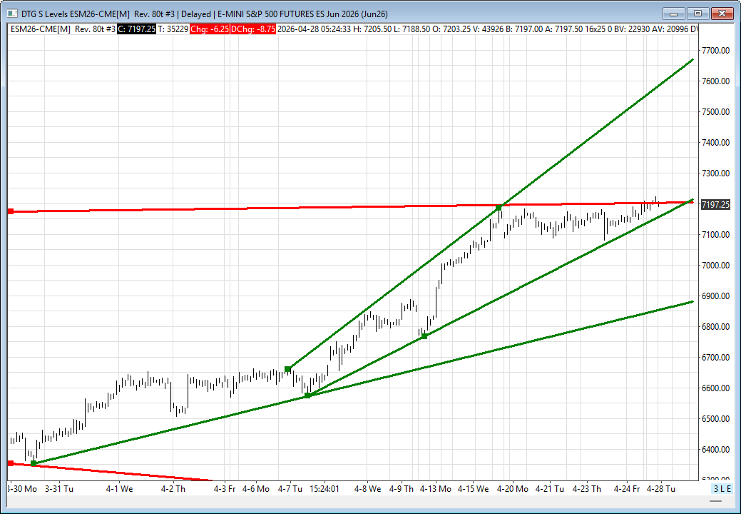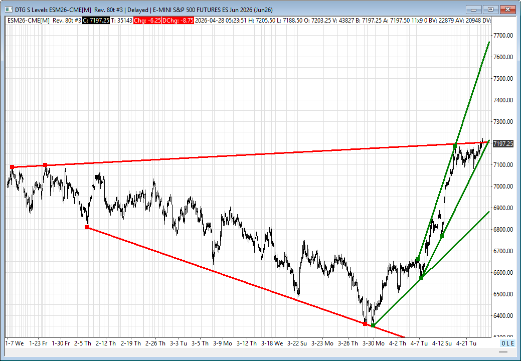 I want you to think about this. Since 03/31/26: The ES has rallied 774.25 points, or +11.53%, still down 0.06% YTD; the NQ has gained 4,854.00, or 19.50%, still down 0.29% YTD; the YM gained 3,338 points, or +7%, still down 3.01% YTD; and RTY has gained 341.30 points, or +13.06%, still down 0.79% YTD.