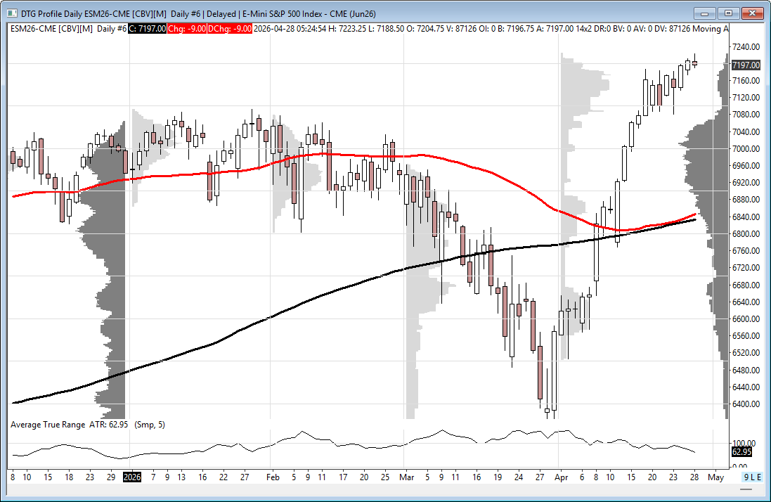 The E-mini S&P 500 June contract opens today with price anchored just above the Pivot Point at 7196.25, which currently serves as the primary neutral axis and the line in the sand between a bullish and bearish session structure. The overnight profile has yet to establish a clear directional conviction, leaving the market in a balanced, two-sided condition as participants await a catalyst to define the day’s range.