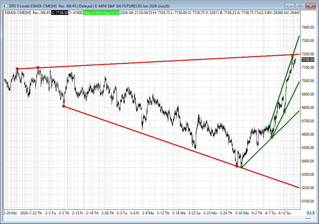 I think when there is a real agreement, there will be a real rally, and after that, any decent pullback will get bought. I don’t want to get ahead of myself, but I don’t think it’s outlandish that the ES could rally to 7350 or higher, especially if April closes out the month higher.