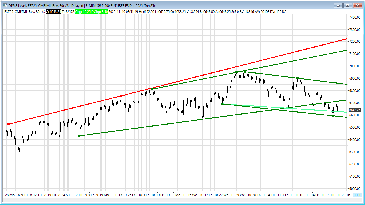 Key ES Support: 6586/83s — if broken, could lead to deeper selling.