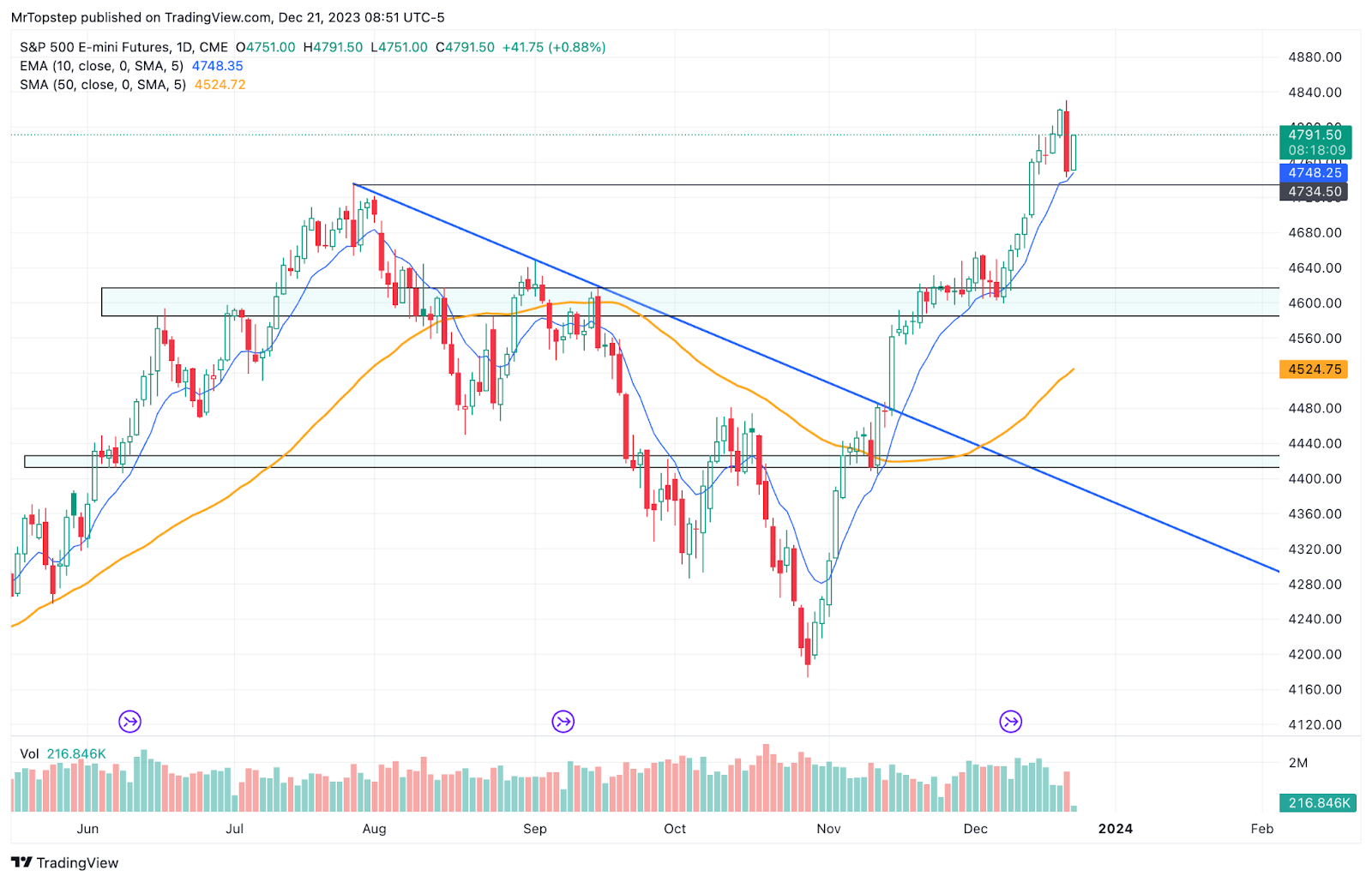 • (**Daily close above 4785.88 puts the market back on the march higher.)